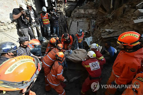 정부는 지진피해 구호 지원을 위해 탐색구조팀과 의료팀으로 구성된 긴급구호대를 네팔에 파견했다.