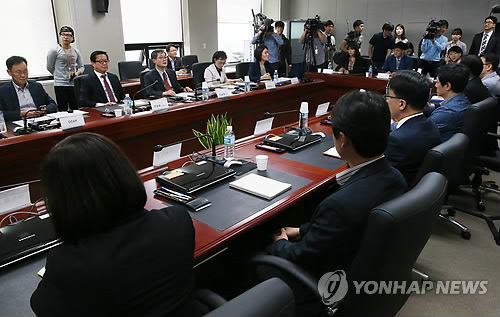 | △ 지난 4일 오전 서울 강남구 도곡동 한국소비자원 서울지원에서 '가짜 백수오' 논란 관련 간담회가 열리고 있다. 이날 간담회에는 이남희 피해구제국장과 CJ오쇼핑, GS홈쇼핑, NS홈쇼핑, 롯데홈쇼핑, 현대홈쇼핑, 홈앤쇼핑 등 6개 업체 관계자가 참석했다. |