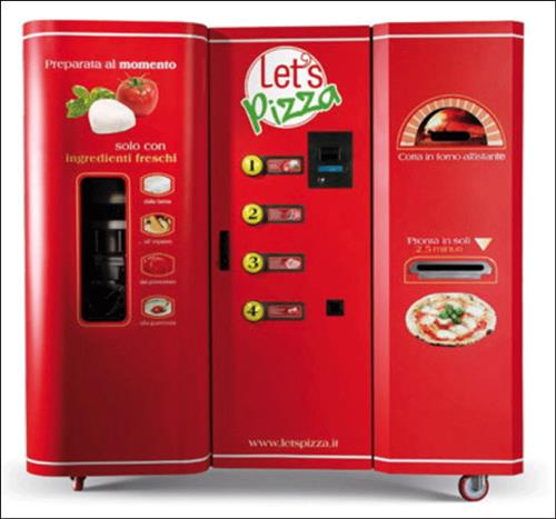 이 기계는 토핑 종류에 따라 90가지 피자를 단 3분만에 완성시킨다. 자판기 이용자는 밀가루 반죽, 도우 제작, 토핑, 굽기, 포장까지 모든 과정을 투명창으로 직접 볼 수 있다.