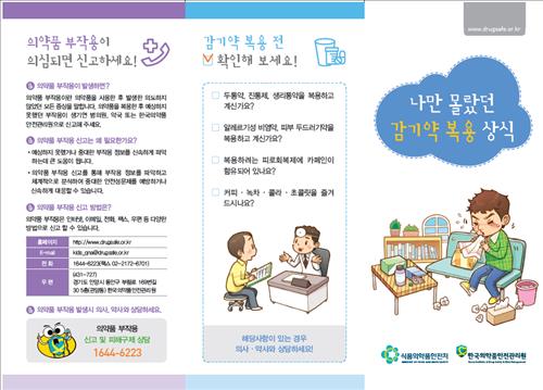 의약품안전원은 이런 내용을 담은 '나만 몰랐던 감기약 복용상식' 리플릿 2만부를 제작해 의료기관, 약국, 보건소 등에 배포했다고 밝혔다.
