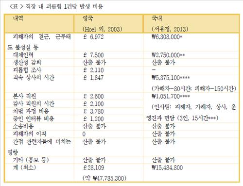 괴롭힘 건당 최소 1천500만원 기업 손실
