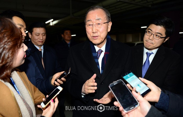 [부자동네타임즈 이채봉 기자]대선 불출마를 선언한 반기문 전 유엔 사무총장은 1일 "다른 분, 다른 정파나 정당에 힘을 실어준다는 계획은 없다"며 향후 다른 대선주자와의 연대 방침에 선을 그었다.