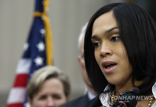 | △ 모스비 검사 "볼티모어 경관 6명 기소" (볼티모어 AP=연합뉴스) |