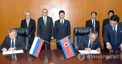 | △ 북-러, 노동자 파견 의정서 조인(조선중앙통신=연합뉴스 자료사진) |