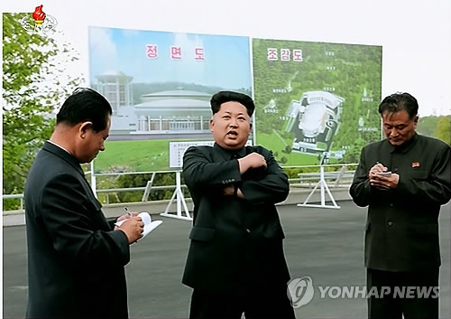 | △ 김정은 북한 국방위원회 제1위원장이 새로 완공된 위성관제종합지휘소를 현지시찰하고 있다.(연합뉴스 자료사진) |