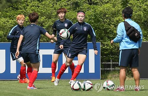 내달 캐나다에서 열리는 여자 월드컵을 앞두고 소집된 20여명의 여자축구 대표팀이 여느 때와 같이 그라운드에서 훈련을 시작했다.