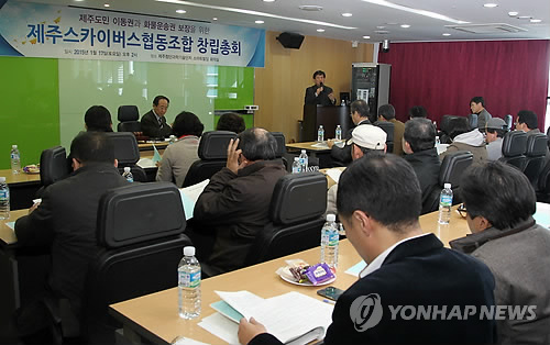 | △ 지난 1월 열린 제주스카이버스협동조합 창립총회 장면. ((연합뉴스 자료사진)) |