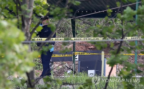 | △ 총기 사고 현장 (서울=연합뉴스) 한종찬 기자 = 13일 총기 사고가 발생한 서울 내곡동 예비군훈련장 사격장에서 수사 관계자가 전화통화를 하고 있다. |