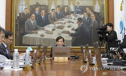 | △ 이주열 한국은행 총재가 지난달 9일 서울 중구 한국은행에서 열린 금융통화위원회 회의를 주재하고 있다. |