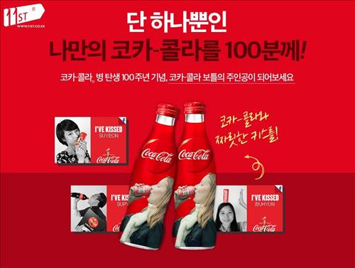 (서울=연합뉴스) 신호경 기자 = SK플래닛이 운영하는 온라인쇼핑사이트 11번가(www.11st.co.kr)는 코카콜라병 탄생 100주년을 기념해 24일까지 '나만의 코카콜라'를 만들어주는 행사를 진행한다.
