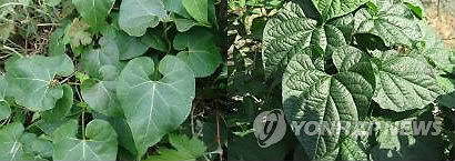 | △ 제주도 농업기술원이 제주산 백수오는 진짜라며 백수오와 이엽우피소 구별 방법을 안내했다. 왼쪽은 백수오 잎으로 단면이 매끄러우며, 오른쪽은 이엽우피소 잎으로 단면이 거칠다.(제주도 농업기술원 제공 ) |