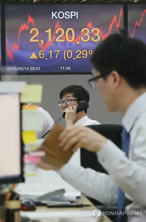 이날 코스피는 전 거래일보다 6.17포인트(0.29%) 오른 2,120.33에 장을 마쳤다.