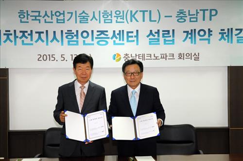 이번 계약으로 충남테크노파크 측은 천안시 직산읍 부지 9천900㎡를 20년간 무상 제공하고, KTL은 중대형 이차전지 시험인증센터를 구축해 서비스를 제공하게 된다.