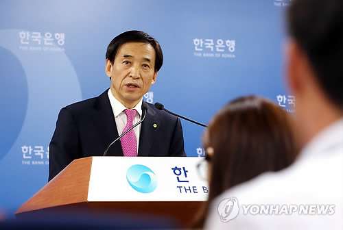 | △ 금통위 심의결과 설명하는 이주열 한은 총재 (서울=연합뉴스) 김주성 기자 = 이주열 한국은행 총재가 15일 오전 서울 중구 한국은행 기자실에서 기준금리를 동결하기로 한 금융통화위원회 심의 결과에 대해 설명하고 있다. 2015.5.15 utzza@yna.co.kr |
