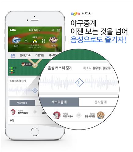 (서울=연합뉴스) 윤보람 기자 = 다음카카오[035720]는 문자를 음성으로 변환해주는 기술(TTS ; Text-To-Speech )을 활용, 문자 야구중계를 음성으로 들려주는 'KBO리그 음성 캐스터중계' 서비스를 출시했다고 15일 밝혔다.
