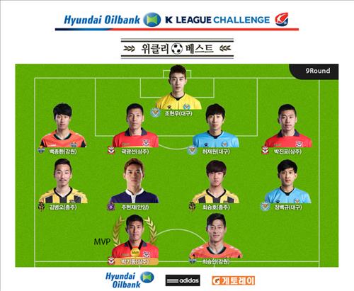 또 수비수는 박진포(상주), 허재원(대구), 곽광선(상주) , 백종환(강원)이, 골키퍼는 조현우(대구)가 뽑혔다.