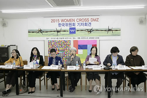 | △ 지난 4월 23일 오전 서울 정동 프란치스코교육회관에서 여성평화운동단체 '위민크로스DMZ'의 기자회견이 열리고 있다. (연합뉴스 자료사진) |