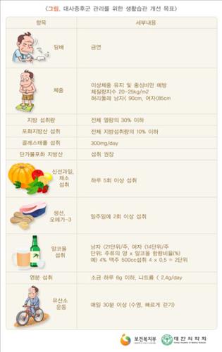 서기현 심평원 상근심사위원은 "현대인은 업무와 PC게임 등으로 앉아있는 시간이 길고 식습관의 서구화로 대사증후군 위험에 쉽게 노출돼 있다"며 "주기적으로 허리둘레 측정 등 간단한 자가진단을 하고 건강검진을 받아야 한다"고 말했다.