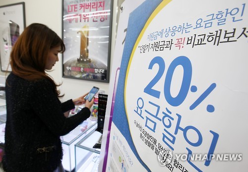 | △ 휴대전화 요금할인율 20%로 상향(연합뉴스 자료사진) |
