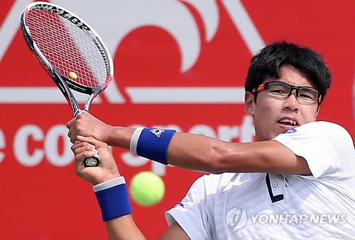 | △ (서울=연합뉴스) 윤동진 기자 = 테니스 국가대표 정현이 17일 오후 서울 송파구 올림픽공원 테니스코트에서 열린 '남자프로테니스(ATP) 르꼬끄 서울오픈 챌린저' 단식 결승에서 소에다 고(일본)를 상대로 스트로크를 하고 있다. 2015.5.17 mon@yna.co.kr |