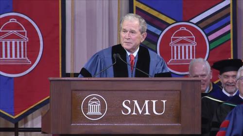 2001년부터 2009년까지 대통령을 역임한 부시 전 대통령은 2010년 퇴임 후 첫 대학 졸업식 연설을 이날 자신의 대통령 기념 도서관이 있는 SMU에서 했다.
