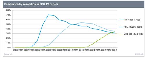 HD는 2000∼2006년, FHD(풀HD)는 2006∼2012년을 각각 지배했고 UHD가 2012∼2018년을 관통하게 된다. 그다음 진화할 해상도인 8K는 2018년에 시작될 것으로 보인다.