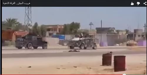 (두바이=연합뉴스) 강훈상 특파원 = 수니파 무장조직 '이슬람국가'(IS)가 이라크 안바르 주(州) 라마디 점령을 선언한 당일인 17일(현지시간) 이라크군 정예부대가 이 도시에서 도망치는 동영상이 공개됐다.
