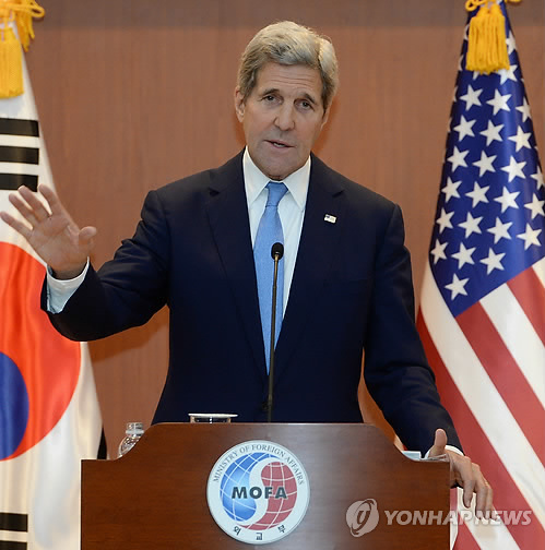 | △ 존 케리 美 국무장관 (서울=연합뉴스) 전수영 기자 = 존 케리 미국 국무장관이 18일 오후 서울 외교부 청사에서 열린 공동 기자회견에서 질문에 답하고 있다. |