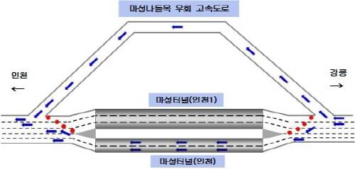18일 한국도로공사에 따르면 21일 오전 9시30분∼정오, 오후 2시∼오후 4시30분까지 두 차례, 총 다섯 시간 동안 인천방향 마성터널 3·4·5차로의 통행이 차단된다.