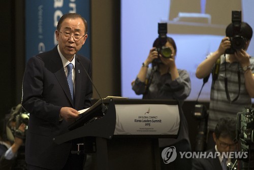 | △ 기조연설하는 반기문 총장 (서울=연합뉴스) 윤동진 기자 = 반기문 유엔 사무총장이 19일 오전 서울 영등포구 콘래드호텔에서 열린 '유엔글로벌콤팩트(UNGC) 코리아 지도자 정상회의'에서 기조연설을 하고 있다. |