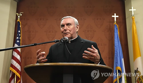 | △ 미국 가톨릭 시카고 대교구 소속 프랜시스 케인 주교가 2014년 1월 성폭행 혐의 사제 신원과 혐의 내용을 공개한 뒤 기자회견을 하고 있다.(AP=연합뉴스 자료사진) |