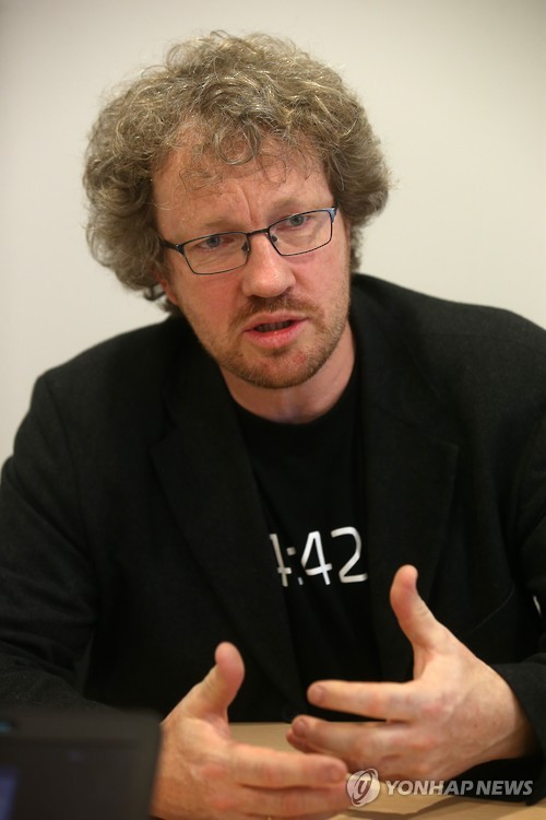 | △ 토마스 헬룸 노르웨이 국영 방송국 PD (서울=연합뉴스) 양지웅 기자 = 토마스 헬룸 노르웨이 국영 방송국 NRK 프로듀서가 19일 서울 동대문디자인플라자에서 연합뉴스와 인터뷰를 갖고 있다. 2015.5.19 yangdoo@yna.co.kr |