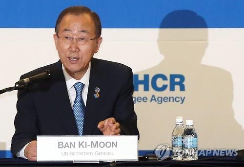 | △ 기자회견하는 반기문 유엔 사무총장 (인천=연합뉴스) 윤태현 기자 = 반기문 유엔 사무총장이 19일 오후 인천시 연수구 송도컨벤시아에서 열린 기자회견에서 취재진의 질문에 답변하고 있다. |