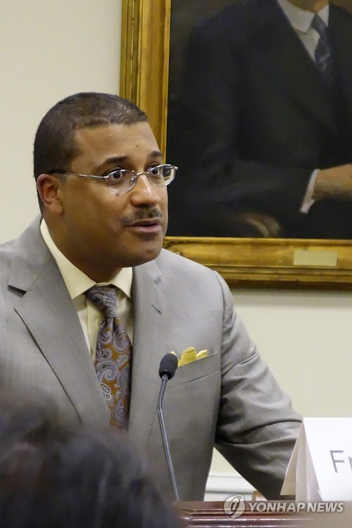 | △ (워싱턴=연합뉴스) 김세진 특파원 = 프랭크 로즈 미 국무부 군축·검증·이행담당 차관보가 19일(현지시간) 워싱턴DC의 레이번 의원회관에서 정책연구기관 한미연구소(ICAS) 주최로 열린 토론회에서 연설하고 있다. 2015.5.20 smile@yna.co.kr |