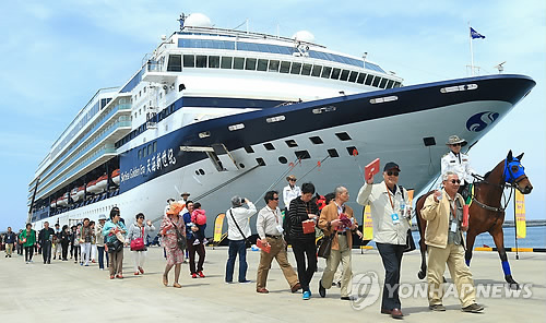 지난해 크루즈선을 타고 한국을 방문한 관광객 105만명 가운데 90%가 중국인이다.