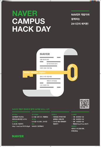 (서울=연합뉴스) 윤보람 기자 = 네이버는 예비 개발자를 꿈꾸는 대학생을 대상으로 하는 해커톤 행사인 '캠퍼스 핵데이'를 다음 달 5∼6일 성남시 정자동 네이버 그린팩토리에서 연다고 20일 밝혔다.