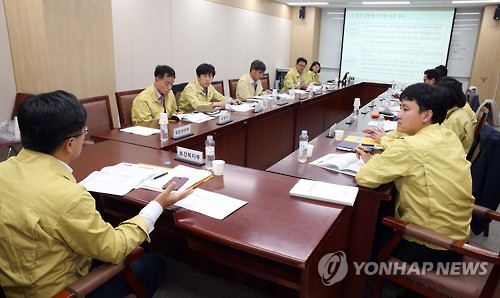 | △ 해외유입 감염병 대응체계 점검을 위한 모의훈련 (세종=연합뉴스) 배재만 기자 = 신종 바이러스인 중동호흡기증후군(메르스)에 감염된 국내 환자가 처음으로 확인된 20일 오후 정부세종청사 보건복지부 중회의실에서 2015 재난대응 안전한국 훈련 일환으로 총 14개 중앙부처 및 지자체 합동 '해외유입 감염병 대응체계 점검을 위한 모의 훈련'이 이뤄지고 있다. 이날 훈련은 신종감염병인 중동호흡기증후군이 국내에 유입된 이후 전국으로 확산되는 상황을 설정해 실시됐다. |