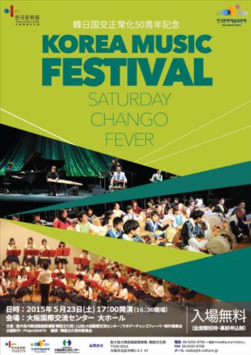 오는 23일 오사카시 국제교류센터 홀에서 열리는 'KOREA MUSIC FESTIVAL-Saturday Chango Fever'에는 50명의 사물놀이 연주단과 관객이 함께하는 대합주, 현지 고등학교 브라스밴드와의 협연, 5개 국악팀 공연, 국악과 재즈의 신한악(新韓樂) 등이 선보일 예정이다.