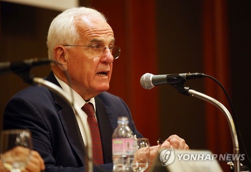 | △ 답변하는 페터 하르츠 전 독일 노동개혁위원장 (서울=연합뉴스) 박동주 기자 = 페터 하르츠 전 독일 노동개혁위원장이 21일 오전 서울 중구 롯데호텔에서 독일 하르츠 노동개혁과 한국에 대한 시사점을 주제로 강연하고 질문에 답변하고 있다. pdj6635@yna.co.kr |