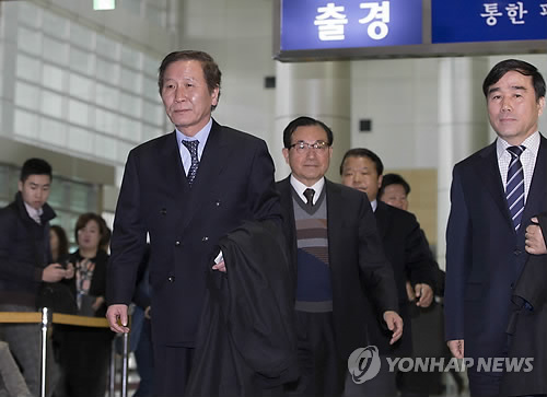 | △ 정기섭 개성공단협회장 등 입주기업 대표단이 경기 파주시 경의선 남북출입사무소를 통해 출경하는 모습.(연합뉴스 자료사진) |