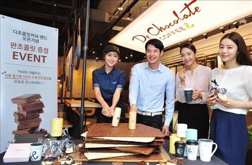 | △ 할리스에프앤비는 '디초콜릿커피앤드'를 공식 론칭하고 이를 기념해 20일 서여의도점에서 대형 수제 초콜릿 판 깨기 행사를 개최했다. |