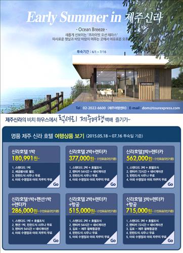 <여행정보> 투어익스프레스, 신라호텔 제주 18만원대
