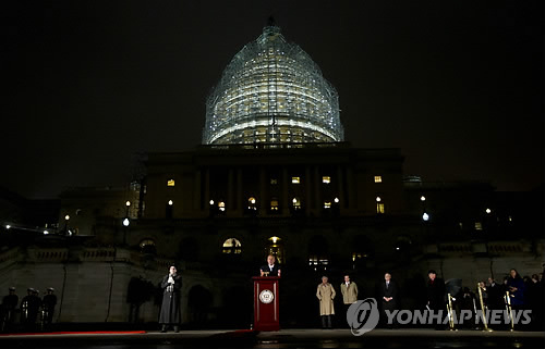 | △ (AP=연합뉴스) 미국 워싱턴DC 의사당 자료 사진. 지난해 12월 2일 의사당 크리스마스 트리 점등식에서 존 베이너 하원의장(공화·오하이오)이 연설하는 모습. (AP Photo/Manuel Balce Ceneta) |