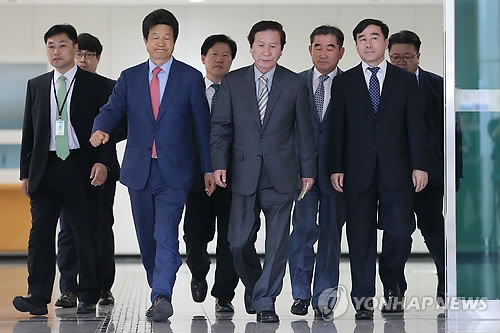 | △ 정기섭 개성공단기업협회장(가운데) 등 기협관계자들(연합뉴스 자료사진) |