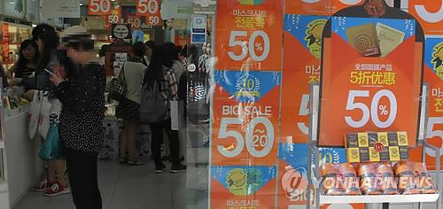 | △ 중국 노동절 연휴 기간인 지난달 30일 오후 서울 중구 명동의 한 상점에서 관광객들이 물건을 구입하고 있다. |