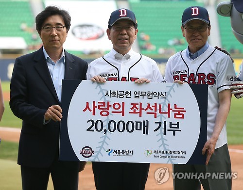 시는 이를 위해 22일 오후 잠실야구장에서 열리는 두산베어스와 SK와이번스 경기에 앞서 박원순 시장과 김승영 두산베어스 대표이사, 황용규 서울시사회복지협의회장이 참석한 가운데 사회공헌협약을 체결한다.