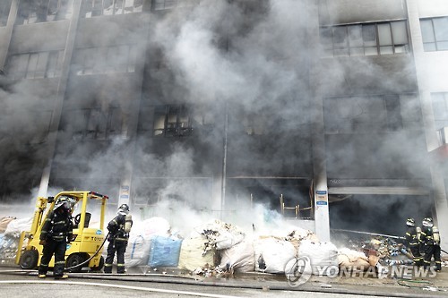 4층에서 난 불은 1층까지 번져 의류업체 등 이 건물에 입주한 다른 사업장을 모두 태웠다.