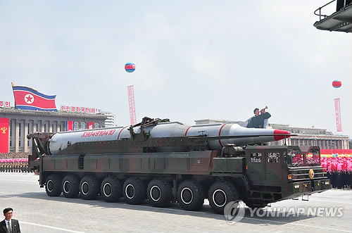 | △ 미국 국방부는 성명을 통해 오는 2020년까지 북한과 이란의 탄도미사일 위협에 대처하기 위한 신형 레이더를 알래스카주 내륙 중앙의 클리어 공군기지에 배치할 계획이라고 밝혔다. 사진은 지난 2013년 7월 27일 평양 김일성 광장에서 열린 정전 60주년 열병식에 등장한 북한 대륙간탄도미사일(ICBM) KN-08. |