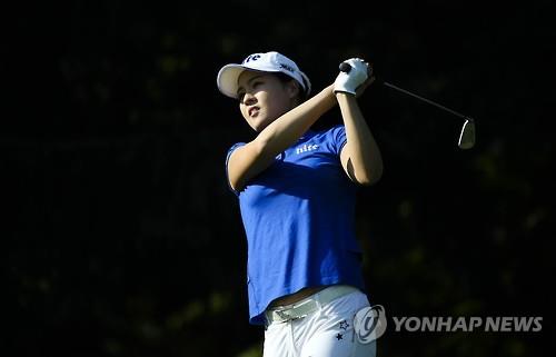 | △ 서울=연합뉴스) 24일 춘천 라데나골프클럽에서 열린 2015 두산매치플레이 챔피언십 4강전 3번홀에서 전인지가 아이언 티샷을 하고 있다. 2015.5.24 << KLPGA 제공 >> |