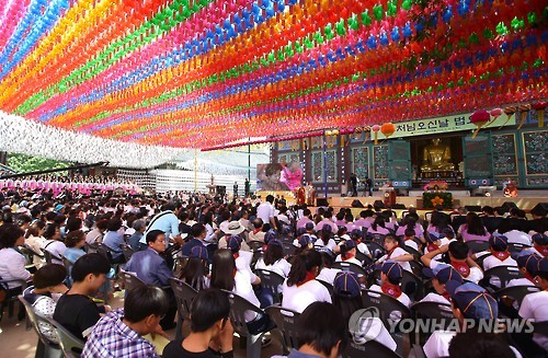 | △ 부처님오신날 봉축 법요식 (서울=연합뉴스) 김도훈 기자 = 불기 2559년 부처님오신날인 25일 오전 서울 종로구 조계사에서 봉축법요식이 진행되고 있다. |
